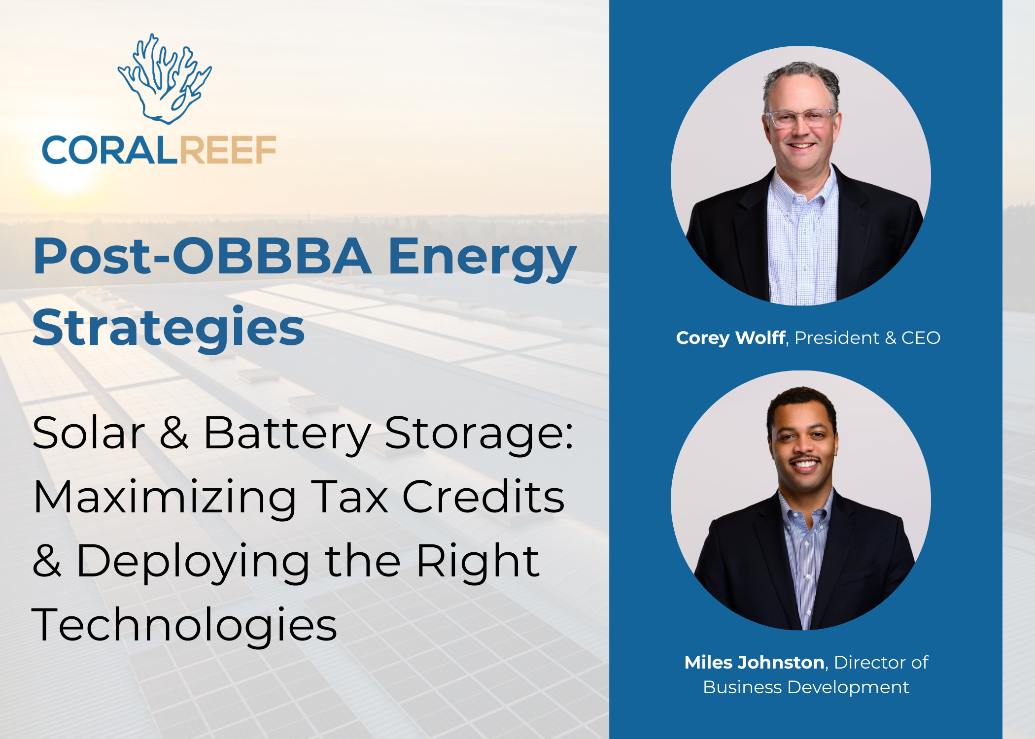 Join Coral Reef Partners on Monday, January 26th at 11am EDT for an exclusive 45-minute webinar where we will provide insights into potential policy shifts, tax incentives, and emerging renewable technologies for your business.